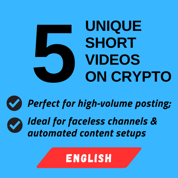 5 UNIQUE English-Language 9:16 Vertical MP4 Videos on Crypto for All Short-Form Platforms