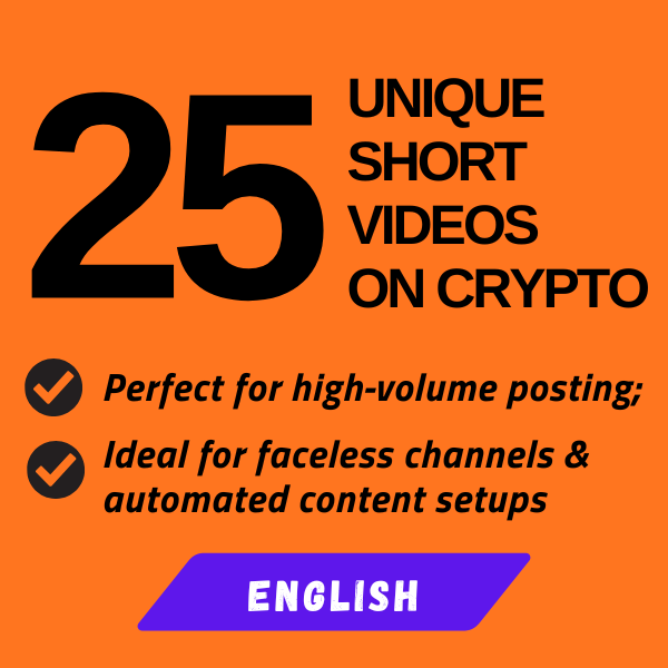 25 UNIQUE English-Language 9:16 Vertical MP4 Videos on Crypto for All Short-Form Platforms